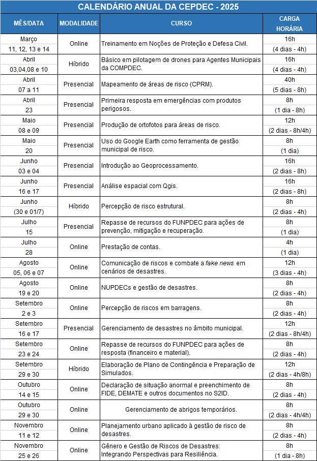 Calendário de Cursos 2025 Clique aqui e baixe o documento em PDF (AQUI) ÚLTIMA ATUALIZAÇÃO DO CALENDÁRIO DE CURSO:04/11/2025